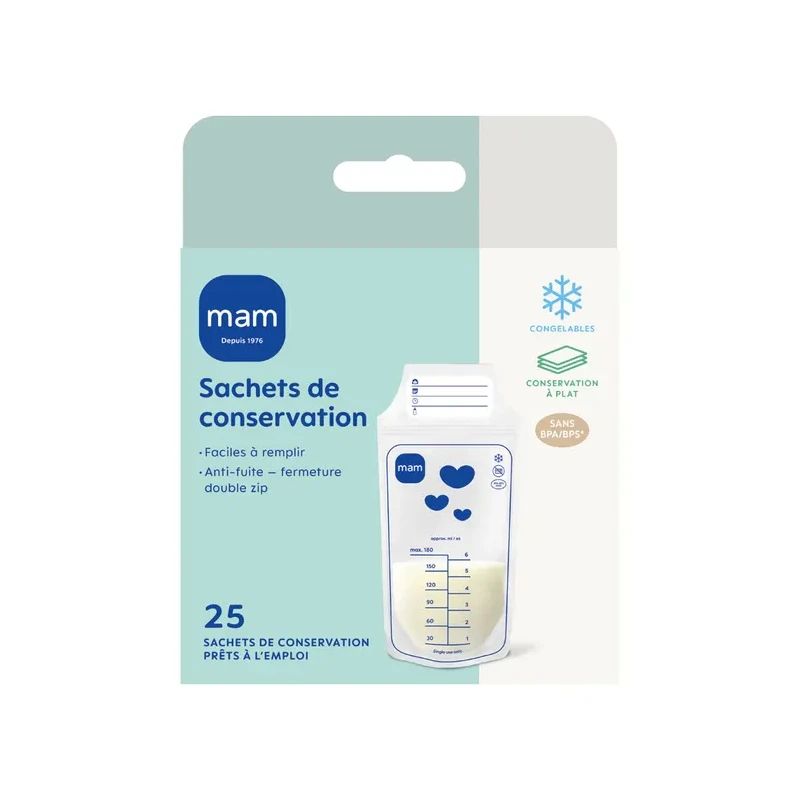 Les sachets de conservation lait maternel MAM sont parfaitement adaptés pour la conservation du lait maternel au réfrigérateur ou le congélateur. Ils permettent aux mamans allaitantes de conserver le lait tiré en toute tranquillité pour une utilisation ultérieure.