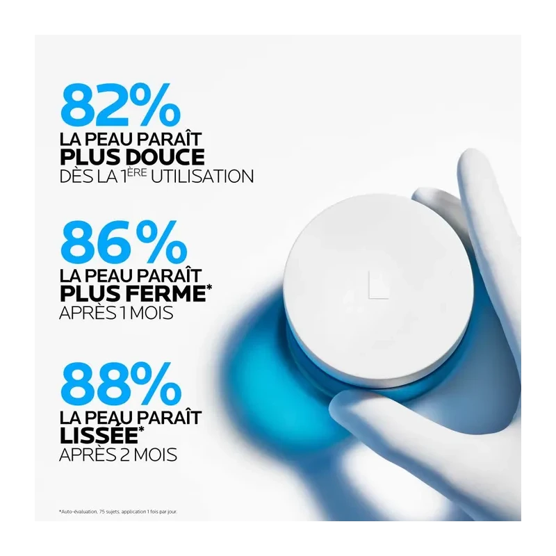 Enrichie en acide hyaluronique pur et en vitamine B5, cette crème hydratante raffermissante lissante et repulpante offre une action ciblée pour corriger rides et perte de fermeté. L'innovation dermatologique de La Roche Posay s'appuie sur l'ectoïne, un ingrédient protecteur et réparateur.