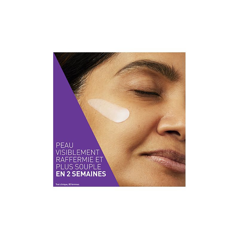 Action anti âge : Réduit visiblement les rides et ridules grâce au complexe de peptides matrixyl 3000 qui stimule la production de collagène.