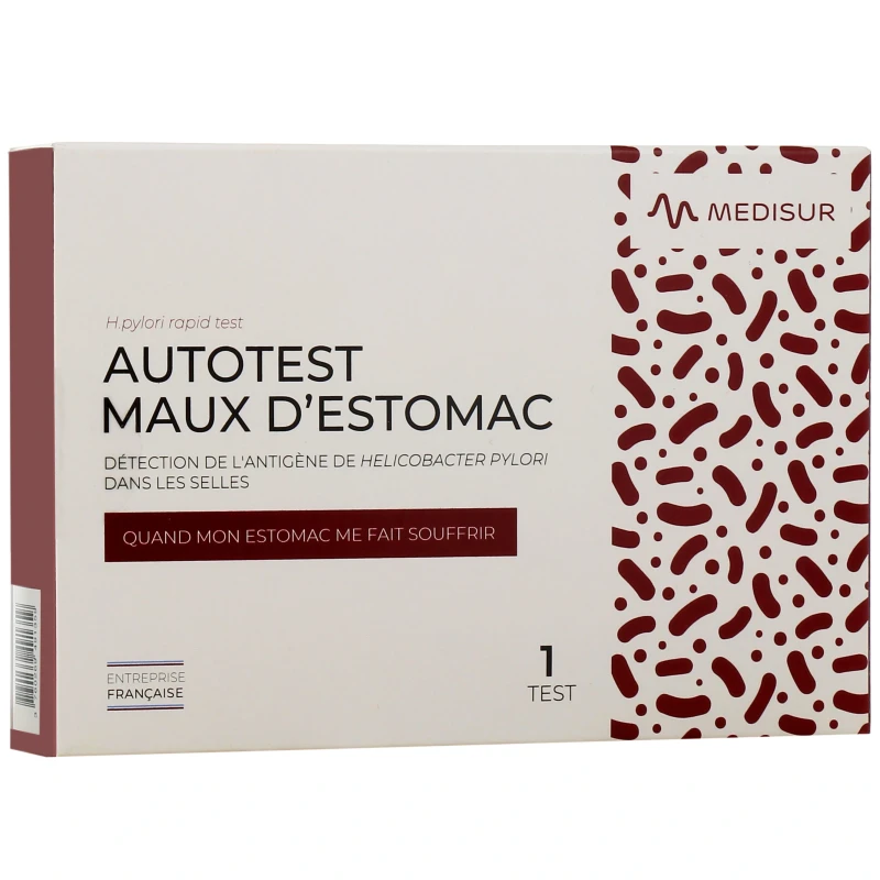 Le Medisur autotest gastrique vous permet de détecter rapidement la présence d'Helicobacter pylori, responsable des troubles digestifs et de l'ulcère gastroduodénal. Ce test de dépistage utilise un échantillon fécal pour identifier les antigènes de cette bactérie dans les matières fécales.