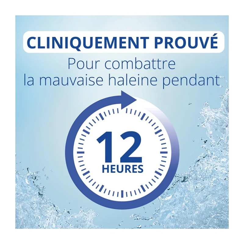 Combat la mauvaise haleine d'origine buccale grâce à une action neutralisante scientifiquement prouvée pendant 12 heures