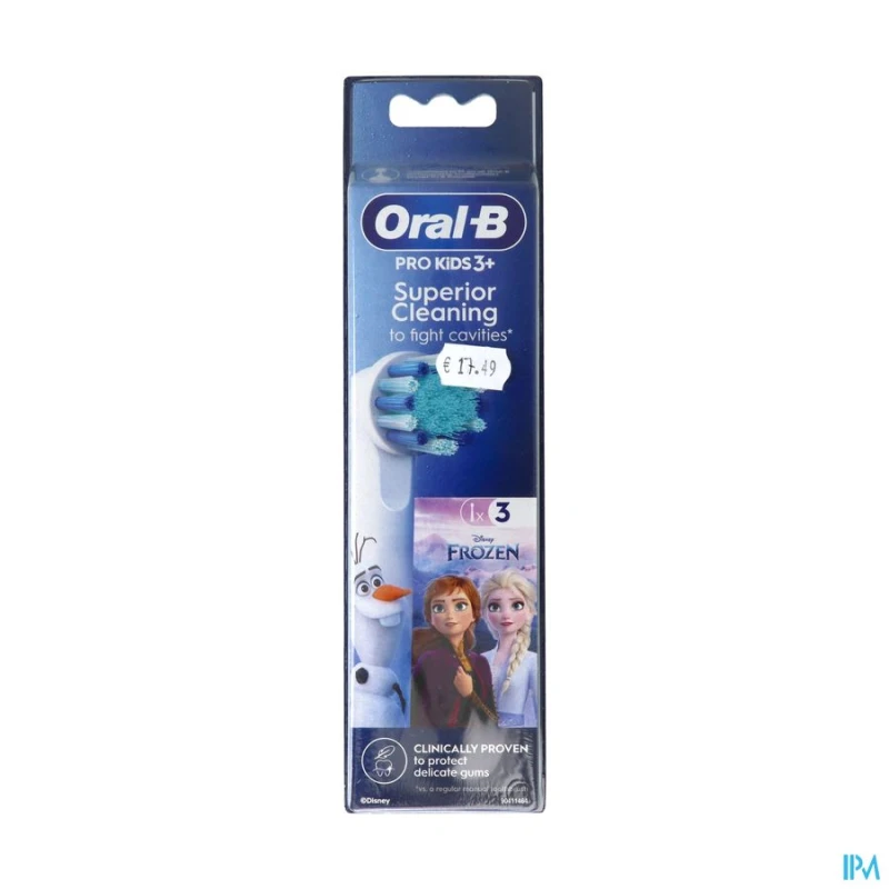 La brossette Oral-B Kids à l'effigie de Disney La reine des neiges, adaptée aux enfants à partir de 3 ans, offre le nettoyage doux et efficace d'une brosse à dents Oral-B recommandée par les dentistes. Les brins extra souples et la petite tête ronde sont spécialement conçus pour les enfants et sont compatibles avec toutes les brosses à dents électriques Oral-B Kids.