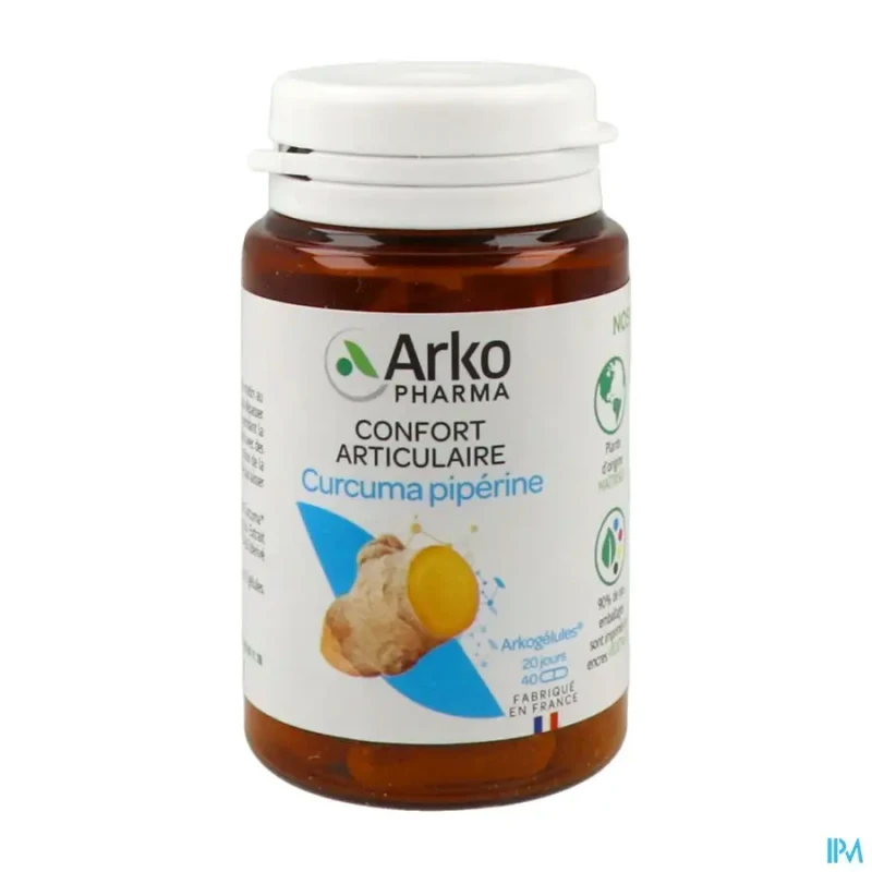 Arkopharma utilise un procédé breveté garantissant la qualité et la traçabilité de ses gélules végétales. L'association curcuma pipérine optimise son absorption pour des résultats visibles et durables sur votre confort au quotidien.