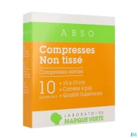 Les compresses ABSO non tissées peuvent être disponibles en version stérile ou tissée non stérile selon les références. La stérilisation se fait généralement à l'oxyde d'éthylène. Vérifiez toujours l'étiquetage du produit et l'intégrité du conditionnement sous sachet pelable avant utilisation pour garantir la stérilité.