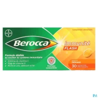 Berocca Immunité Flash est indiqué lors des périodes de besoin accru en vitamines et minéraux, notamment pendant les changements de saison ou en cas de fatigue passagère. Ce complément alimentaire convient particulièrement aux adultes souhaitant un soutien du système immunitaire efficace et rapide.