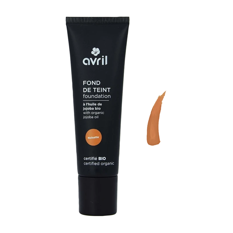 Le fond de teint noisette Avril possède une texture légère qui ne surcharge pas la peau. Sa formule avec dicaprylyl carbonate et huile de jojoba régule naturellement le sébum. Pour les peaux grasses, appliquez une base matifiante avant le fond de teint bio pour un résultat optimal.