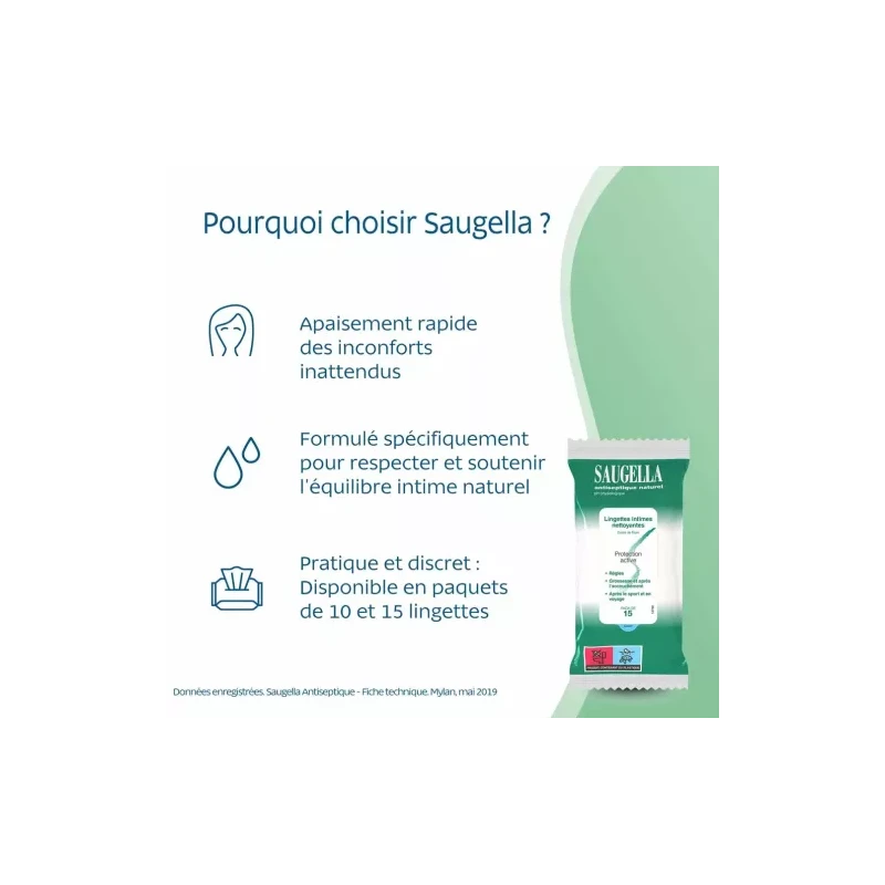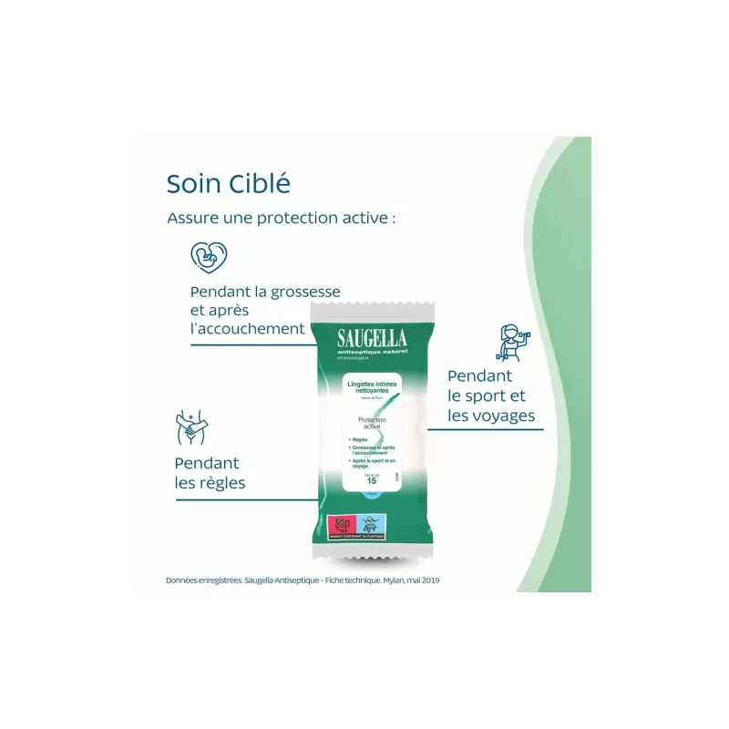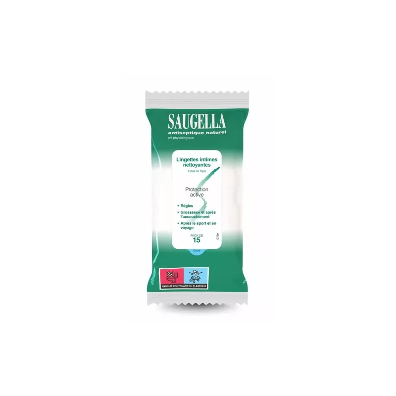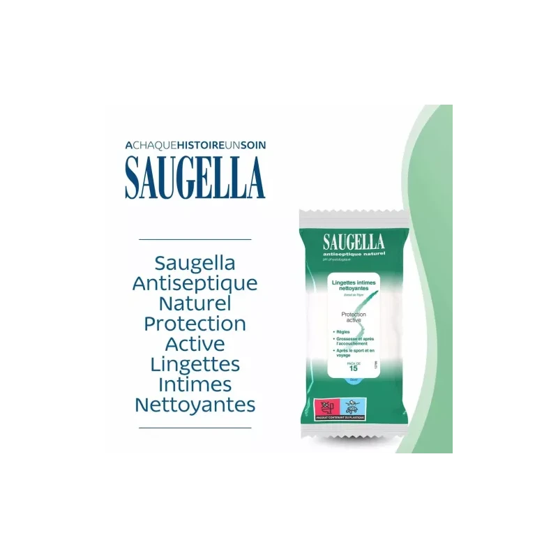 Saugella lingette antiseptique intime protection active nettoyante x15
