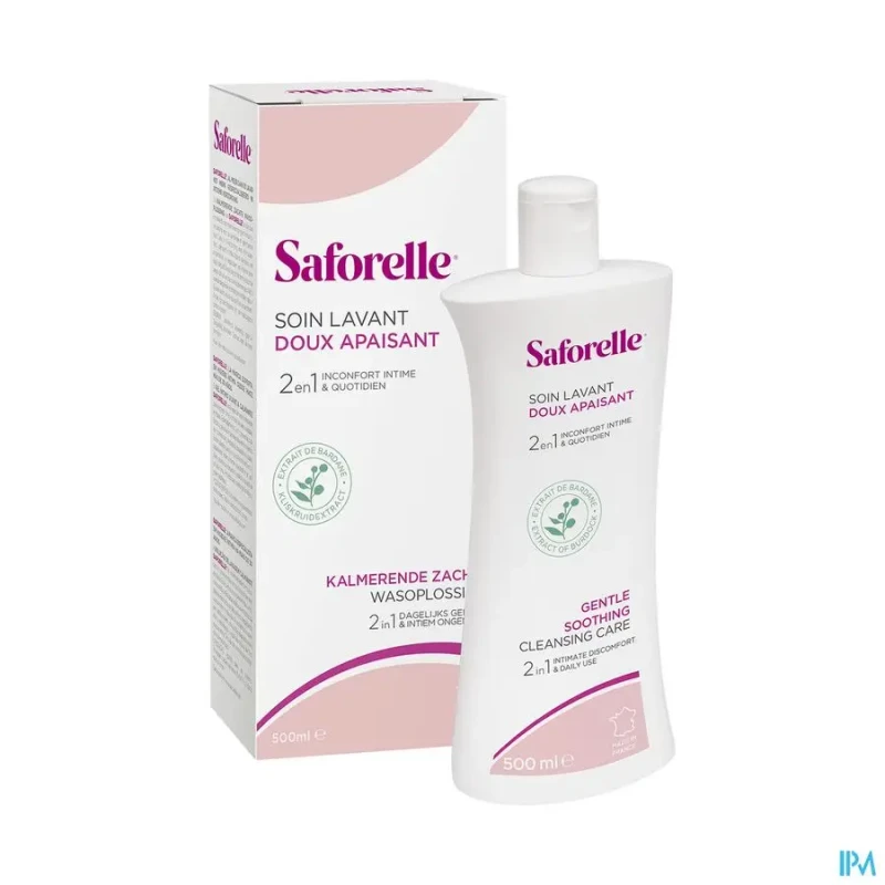 Le soin lavant doux Saforelle est un savon liquide spécialement formulé pour l'hygiène intime et corporelle des peaux sensibles. Sa formulation enrichie à l'extrait de bardane apaise et respecte l'équilibre naturel de la zone intime tout en nettoyant en douceur.