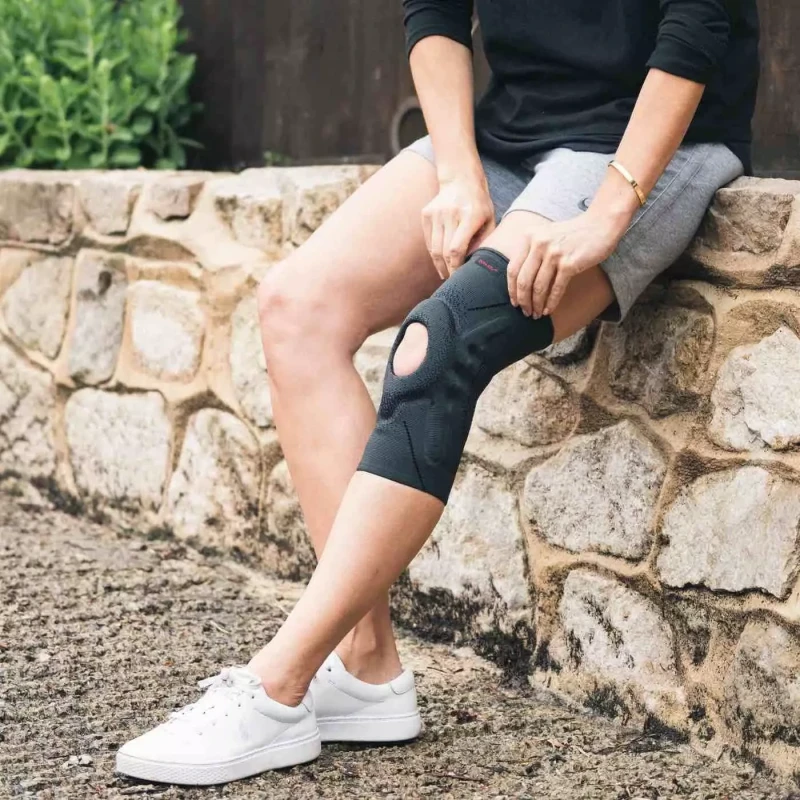 Compression progressive: Le tricotage anatomique assure une répartition homogène de la pression autour du genou pour un effet antalgique optimal.