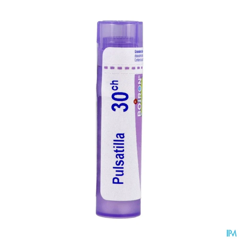 Boiron Pulsatilla 30CH trouve son indication thérapeutique dans les troubles de la sphère féminine, particulièrement pour les règles douloureuses et le syndrome prémenstruel. Il peut également être utilisé pour certains troubles émotionnels et états de sensibilité accrue.