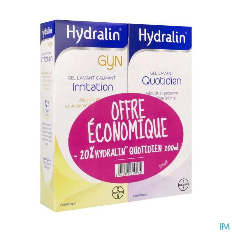 Hydralin quotidien est destiné à l'hygiène intime quotidienne préventive tandis qu'Hydralin Gyn irritation est formulé pour apaiser les gênes et irritations intimes occasionnelles. Le quotidien s'utilise en prévention, le Gyn en traitement ponctuel des désagréments.