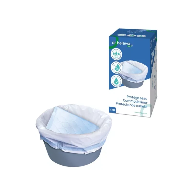 Le protège seau Dr Helewa se compose d'un sac hygiénique à usage unique et d'un tampon super absorbant placé au fond pour neutraliser les odeurs efficacement. Ce système de protection professionnel limite considérablement le risque infectieux.