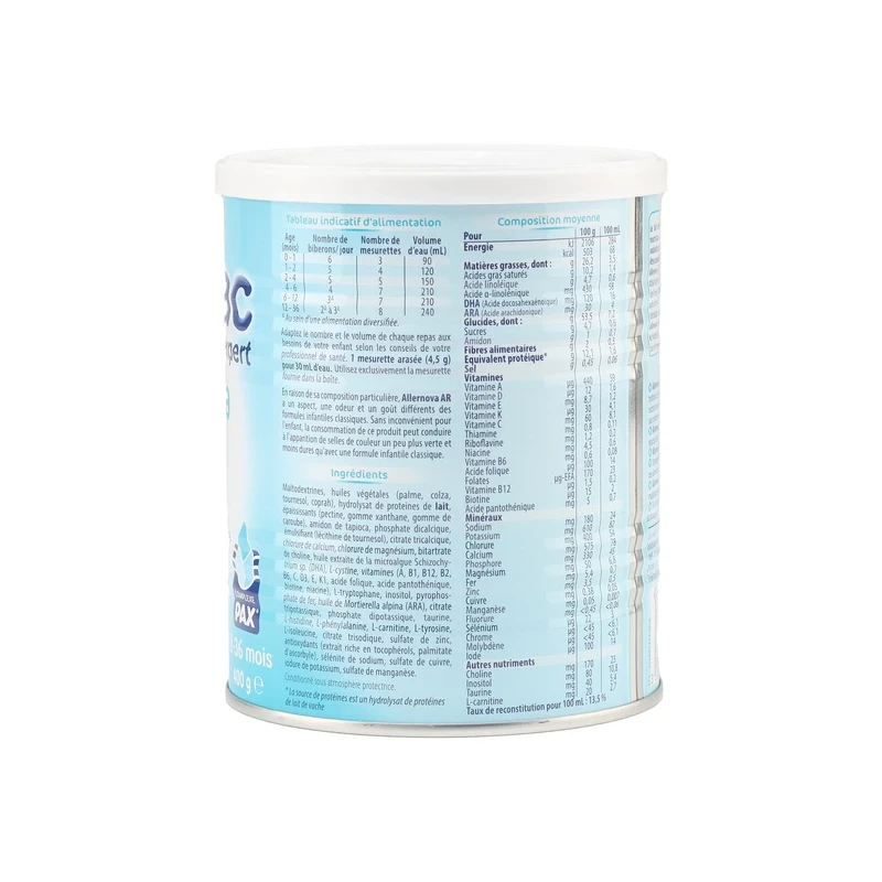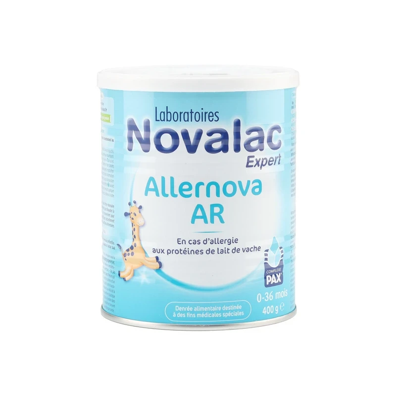Offrez à votre bébé une solution adaptée contre les régurgitations grâce à Novalac Allernova AR, un lait infantile spécialement formulé pour les nourrissons allergiques aux protéines de lait de vache. Ce lait en poudre contient un hydrolysat de protéines poussées pour réduire les risques allergiques tout en assurant une nutrition complète de 0 à 36 mois.