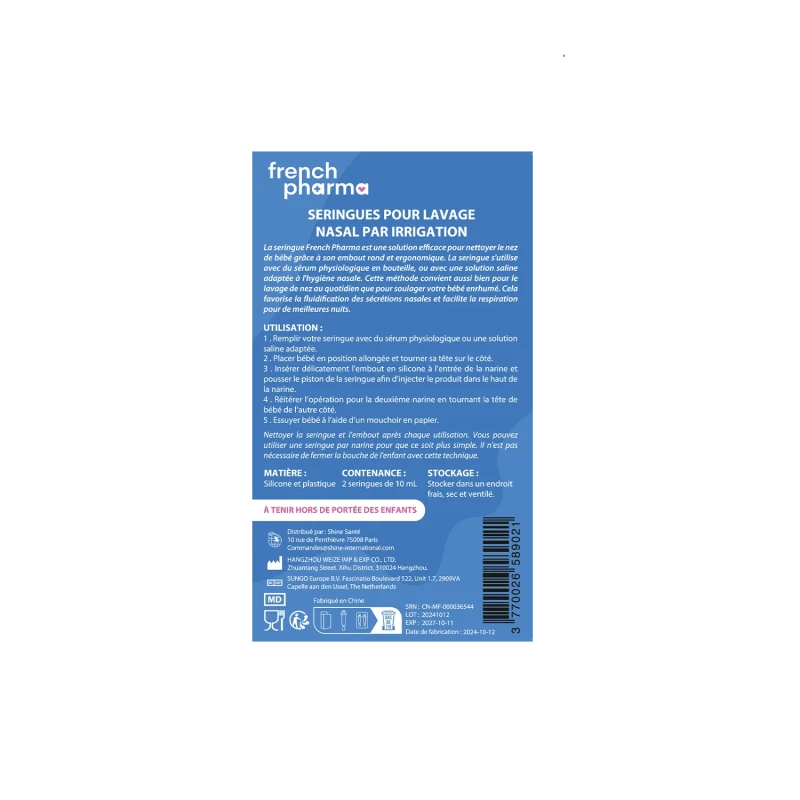 1 - Lavez-vous soigneusement les mains avant toute manipulation. Nettoyez la seringue nasale à l'eau bouillante avant la première utilisation et après chaque usage pour garantir une hygiène optimale.