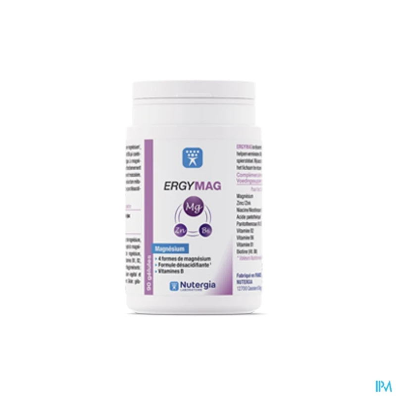 Découvrez Ergymag du laboratoire Nutergia, un complément alimentaire à base de magnésium qui aide à réduire la fatigue physique et nerveuse tout en favorisant votre détente et bien-être au quotidien. Cette formule associe plusieurs formes de magnésium hautement assimilables dont le citrate et bisglycinate de magnésium pour une efficacité optimale.