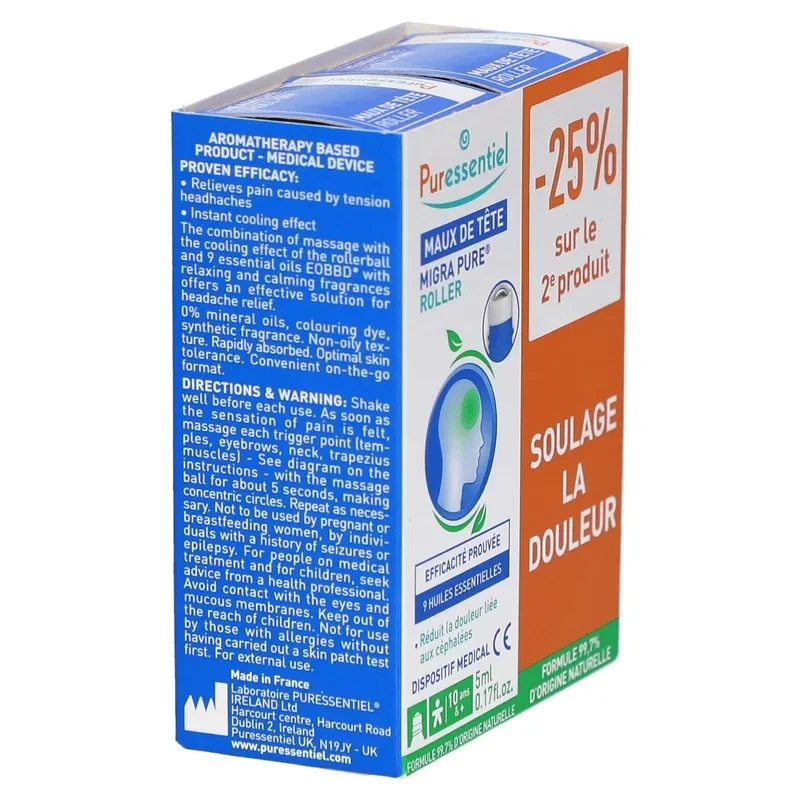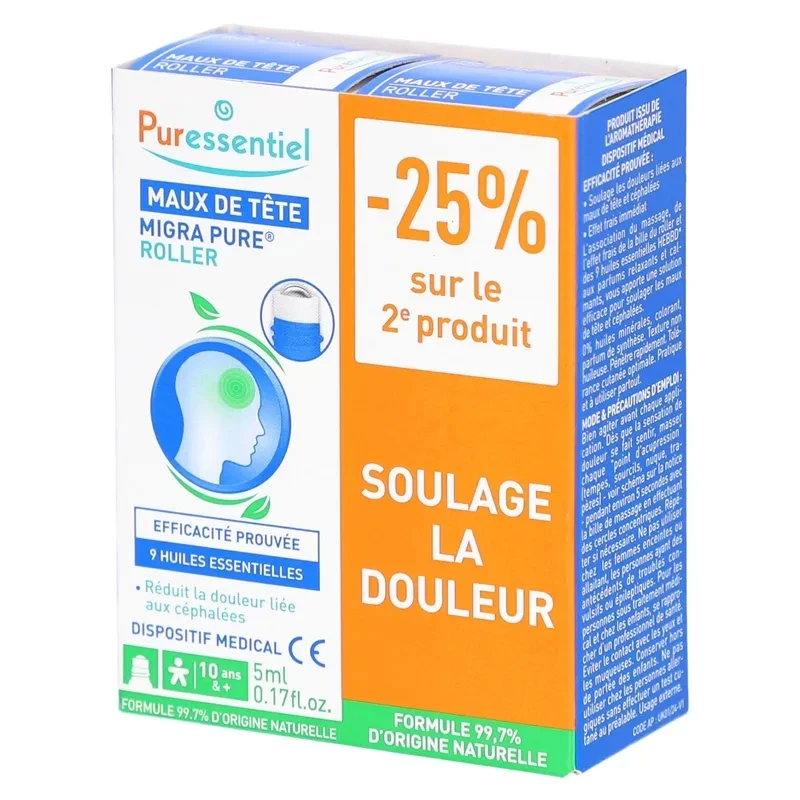 Puressentiel migra pure maux de tête roller 5ml x2