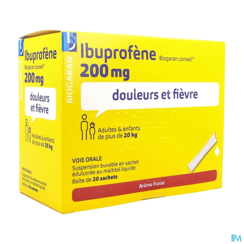 Soulagez rapidement vos douleurs légères à modérées et faites baisser efficacement la fièvre grâce à cette suspension buvable pratique. L'ibuprofene biogaran conseil 200 mg suspension buvable en sachet édulcorée au maltitol liquide est un médicament anti-inflammatoire non stéroïdien destiné aux adultes et enfants.