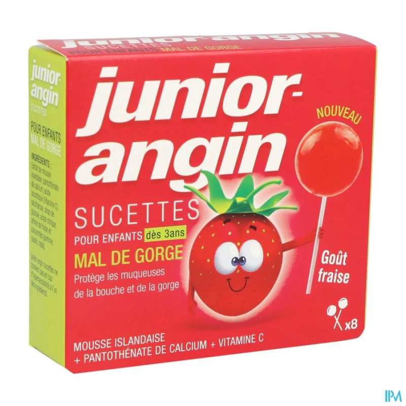Formulées avec de l'extrait de mousse islandaise et enrichies en vitamine C, ces sucettes Junior Angin procurent un confort immédiat. Le principe actif principal réside dans l'extrait de mousse islandaise reconnu pour ses propriétés protectrices et apaisantes des muqueuses.