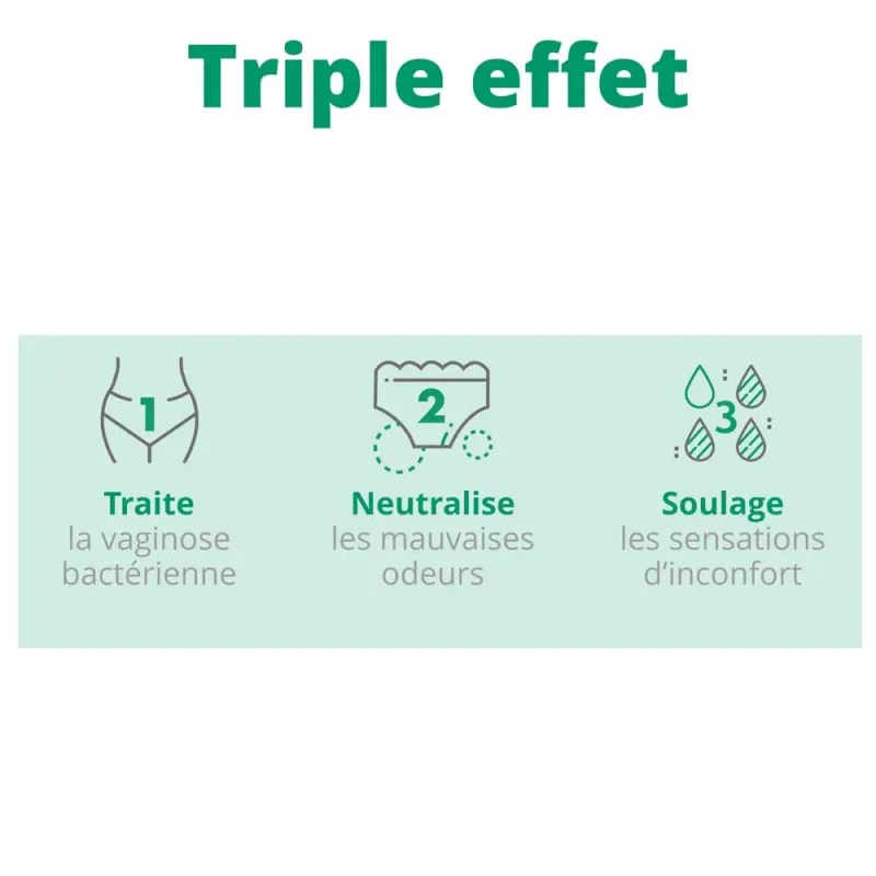 Triple effet protecteur : prévient les récidives, neutralise les mauvaises odeurs et réduit les pertes anormales efficacement.