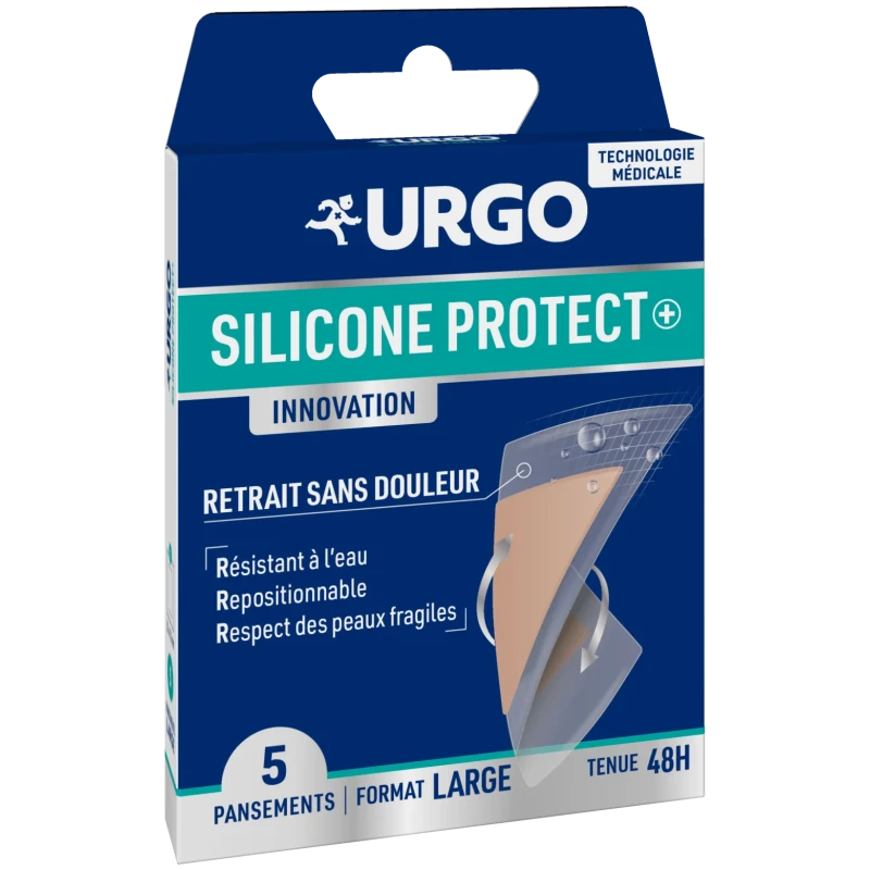 Profitez d'une cicatrisation rapide et d'un retrait sans douleur grâce aux pansements Urgo Silicone Protect +. Ce dispositif médical développé par Urgo Healthcare intègre une technologie silicone innovante qui agit comme une seconde peau pour protéger efficacement vos plaies superficielles au quotidien.