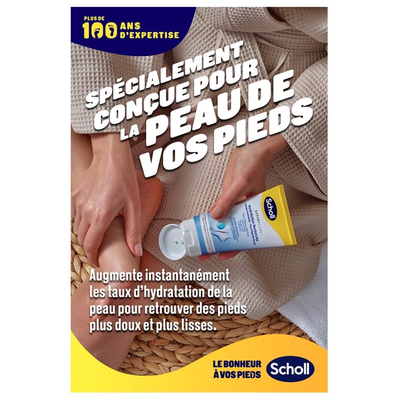 La crème Scholl expert care hydratation renforcée offre une application facile et une sensation douce immédiate, laissant la peau réparée, lisse et visiblement plus saine dès les premières applications.