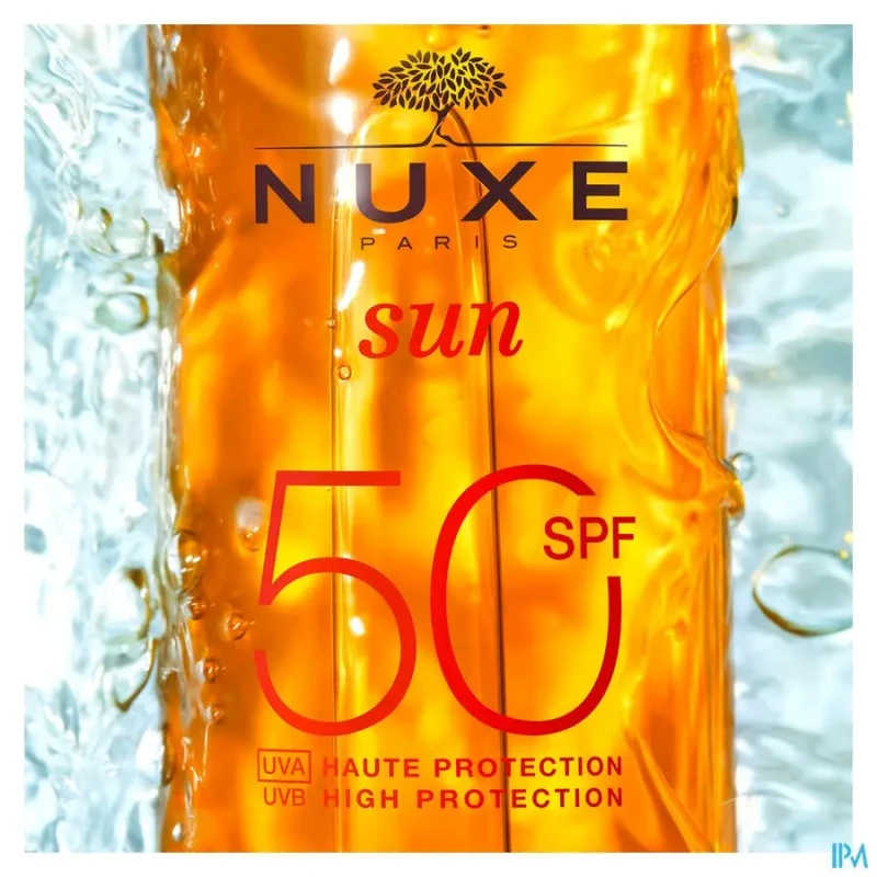 L'huile solaire Nuxe Sun offre une haute protection SPF 50 à large spectre contre les rayons UVA et UVB. Son complexe filtrant breveté assure une défense maximale tout en permettant un bronzage progressif et sublime de la peau.