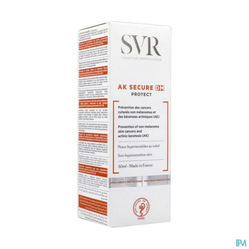 SVR AK Secure est un dispositif médical spécifique pour la prévention cancers cutanés et kératoses actiniques. SVR Sensifine AR crème teintée cible plutôt les rougeurs et peaux réactives avec une protection solaire complémentaire moins spécialisée.