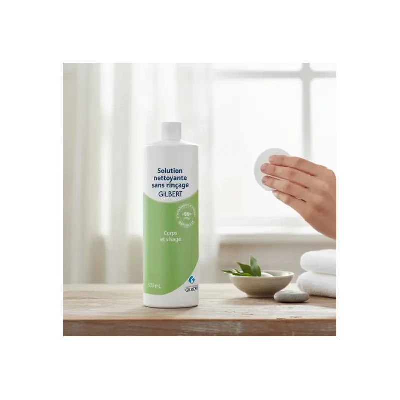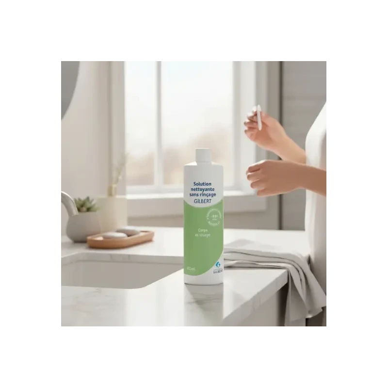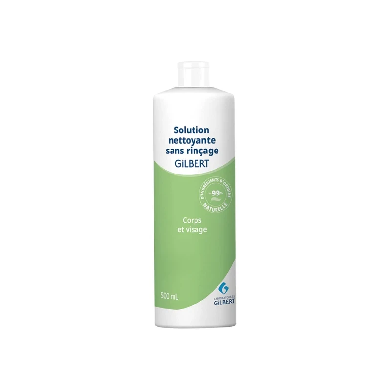 La solution nettoyante Gilbert est un savon sans rinçage développé par le Laboratoire Gilbert pour nettoyer en douceur le visage et le corps. Cette formule haute tolérance permet une hygiène quotidienne complète sans nécessiter d'eau courante.